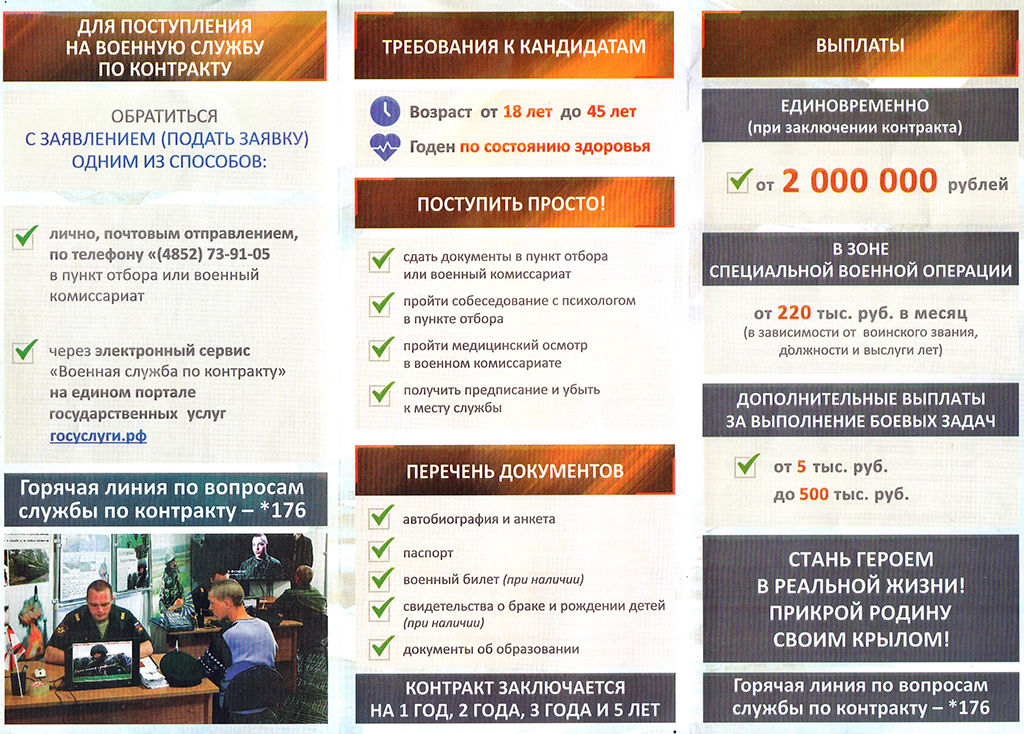 позвонив на горячую линию по вопросам службы по контракту - *176