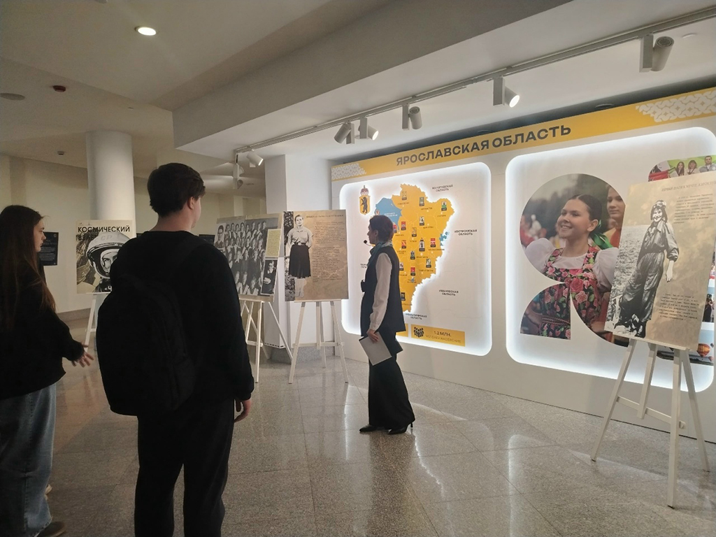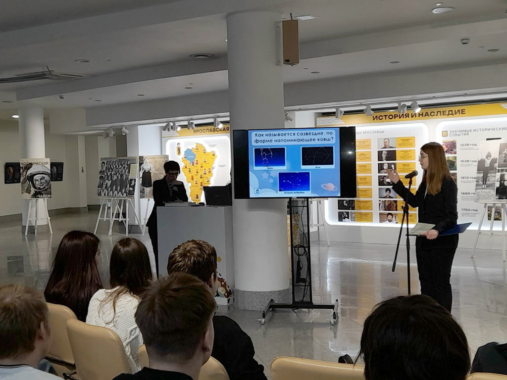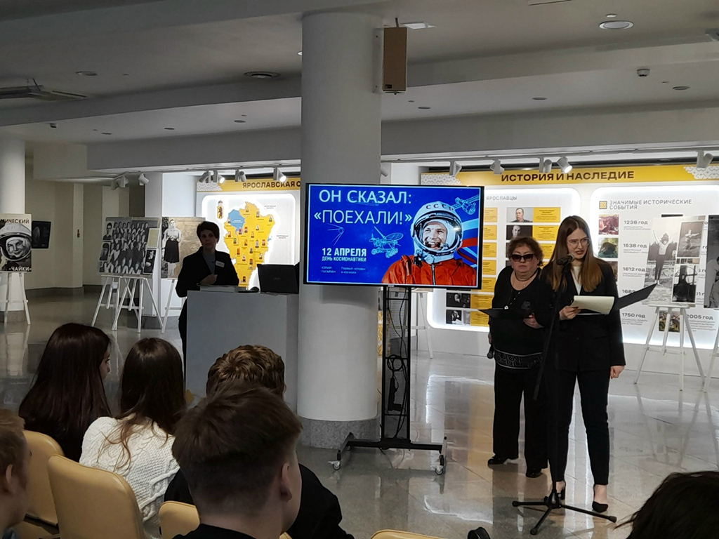 Студенты активно участвовали в викторине, а затем посетили планшетную выставку от Роскосмоса и музея космонавтики «Космический взлет Чайки», посвященную ярославне, первой в мире женщине-космонавту, Герою Советского Союза В.В. Терешковой.