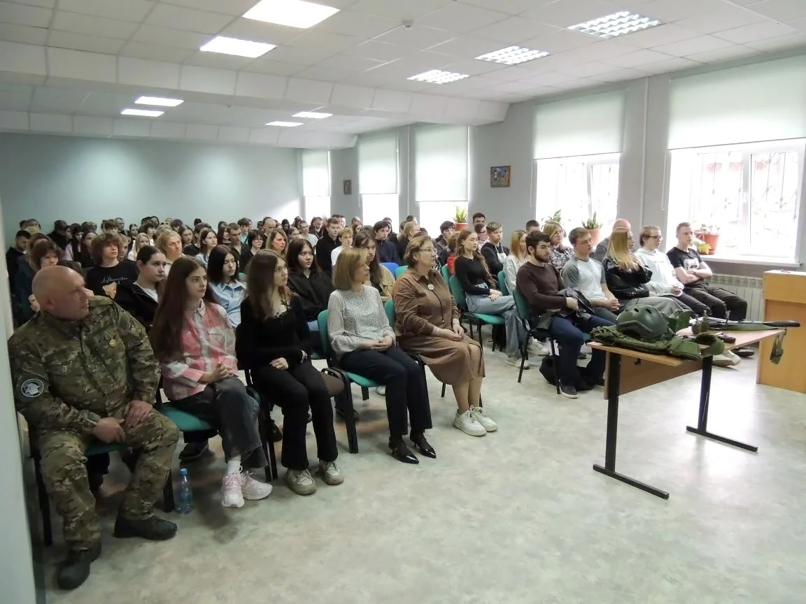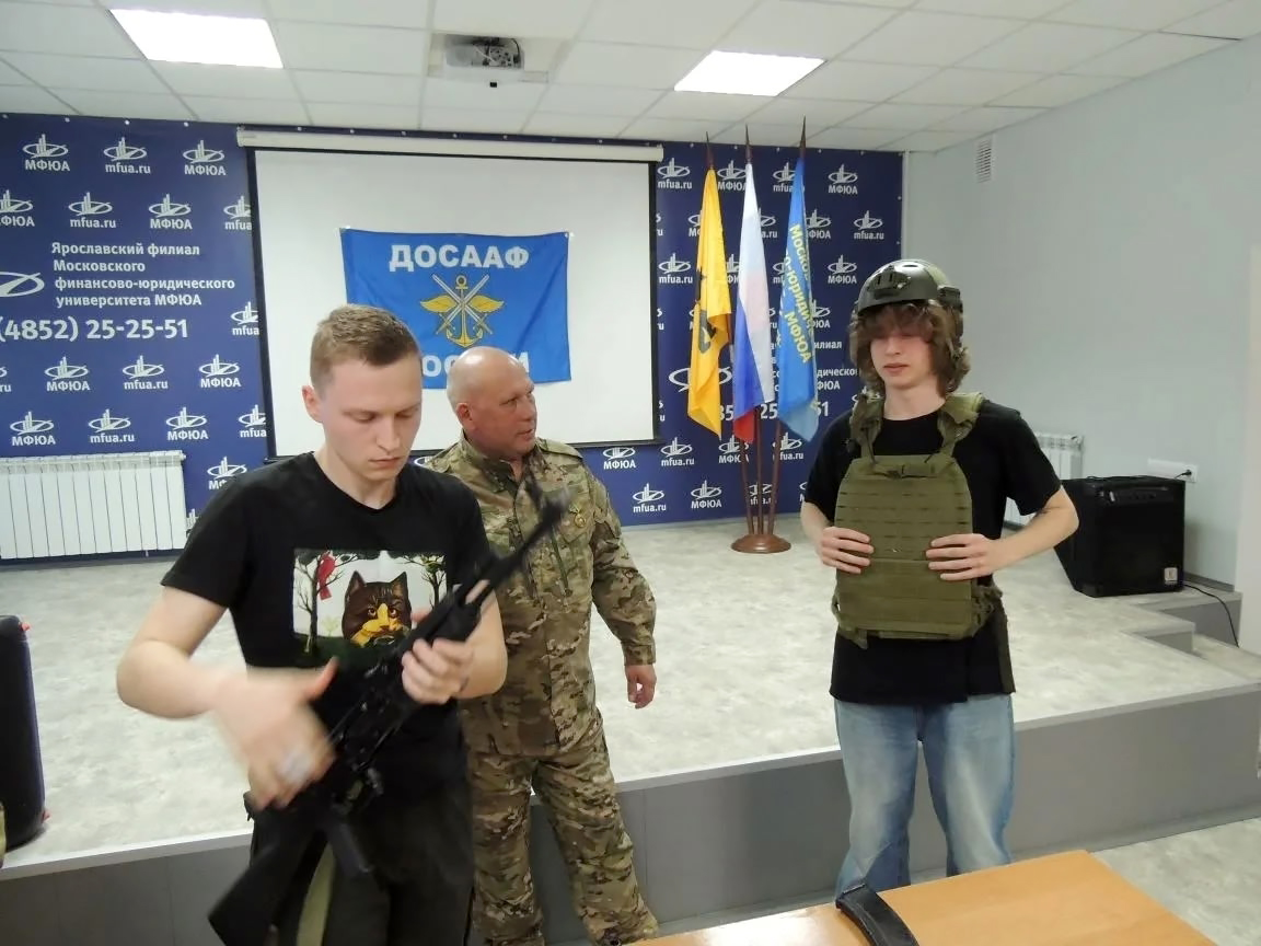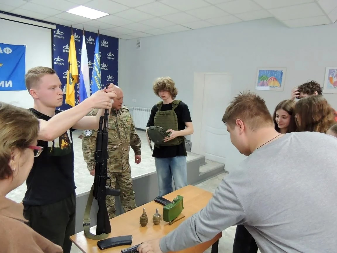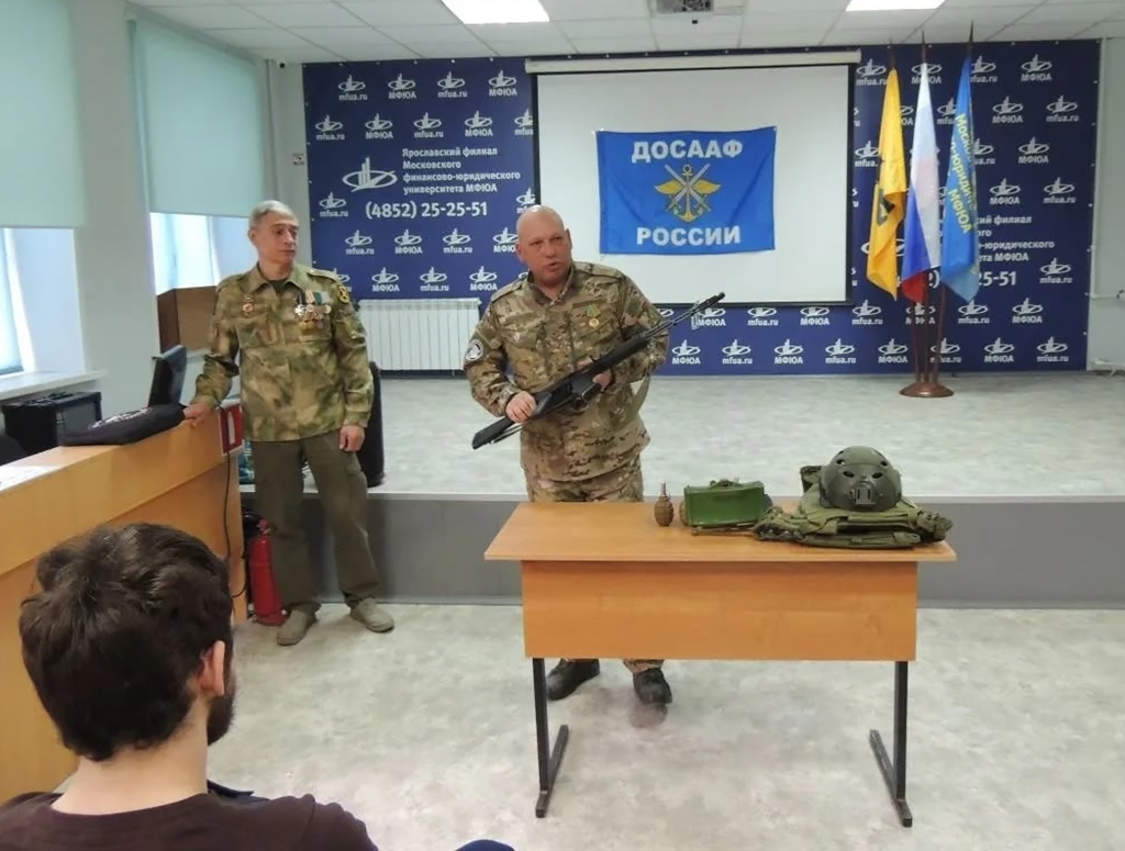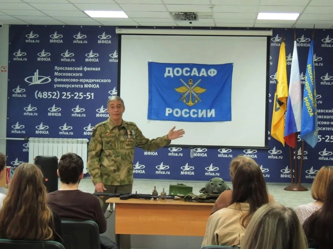 Бывший военнослужащий ЧВК "Вагнер", Рожко Александр Юрьевич познакомил ребят с историей и работой регионального отделения общества ДОСААФ.